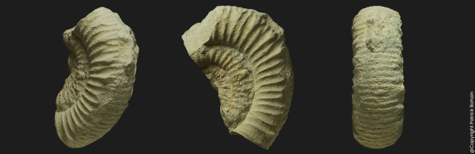 Spécimens P72 et HY7 – Vendée, FRANCE Diamètres : 55 et 105 mm Collection Patrick Bohain Toarcien inférieur Hildaites wrighti (Spath, 1913) Phylogénie Famille : Hildoceratidae Hyatt, 1867 Sous-famille : Hildoceratinae Hyatt, 1867 Genre : Hildaites Buckman, 1921 Bibliographie Publications paléontologiques vendéennes : . BECAUD M. (2006) – Les Harpoceratinae, Hildoceratinae et Paroniceratinae du Toarcien de la Vendée et des Deux-Sèvres, France. . BOHAIN P. (2025) – Les ammonites du Toarcien inférieur de la Vendée (France). Paléontologie, Biostratigraphie, Paléogéographie Plus de références Description Forme … Lire plus